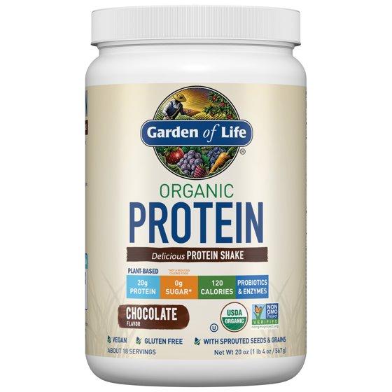 Garden of Life Organic Plant-Based Protein Powder, Chocolate, 20g Protein Shake Drink, Vegan, Probiotics, Digestive Enzymes, 20oz