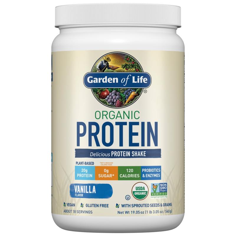 Garden of Life Organic Plant-Based Protein Powder, Vanilla, 20g Protein Shake Drink, Vegan, Probiotics, Digestive Enzymes, 19.05oz