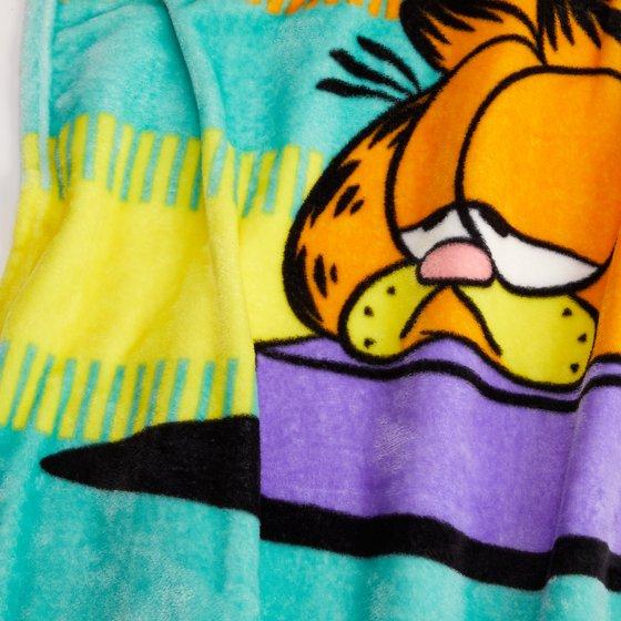 Garfield's plush blanket with his iconic smirk and lazy posture adorn its surface, evoking memories of comic strip antics. Soft and inviting, it promises warmth on chilly evenings, each touch revealing the blanket's cozy embrace. The blanket's vibrant colors and playful design capture the essence of Garfield's whimsical charm, making it a delightful addition to any fan's collection. When you child is wrapped in this plush blanket, one can't help but feel the playful spirit of everyone's favorite lasagna-loving cat. This blanket is large enough to fit a standard twin or full size bed and will keep them warm and cozy night after night.