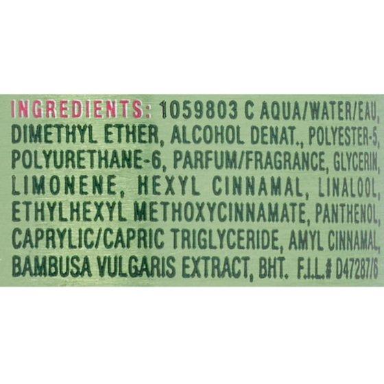 1059803 C AQUA/WATER/EAU, DIMETHYL ETHER, ALCOHOL DENAT., POLYESTER-5, POLYURETHANE-6, PARFUM/FRAGRANCE, GLYCERIN, LIMONENE, HEXYL CINNAMAL, LINALOOL, ETHYLHEXYL METHOXYCINNAMATE, PANTHENOL, CAPRYLIC/CAPRIC TRIGLYCERIDE, AMYL CINNAMAL, BAMBUSA VULGARIS EXTRACT, BHT. F.I.L.# D47287/6