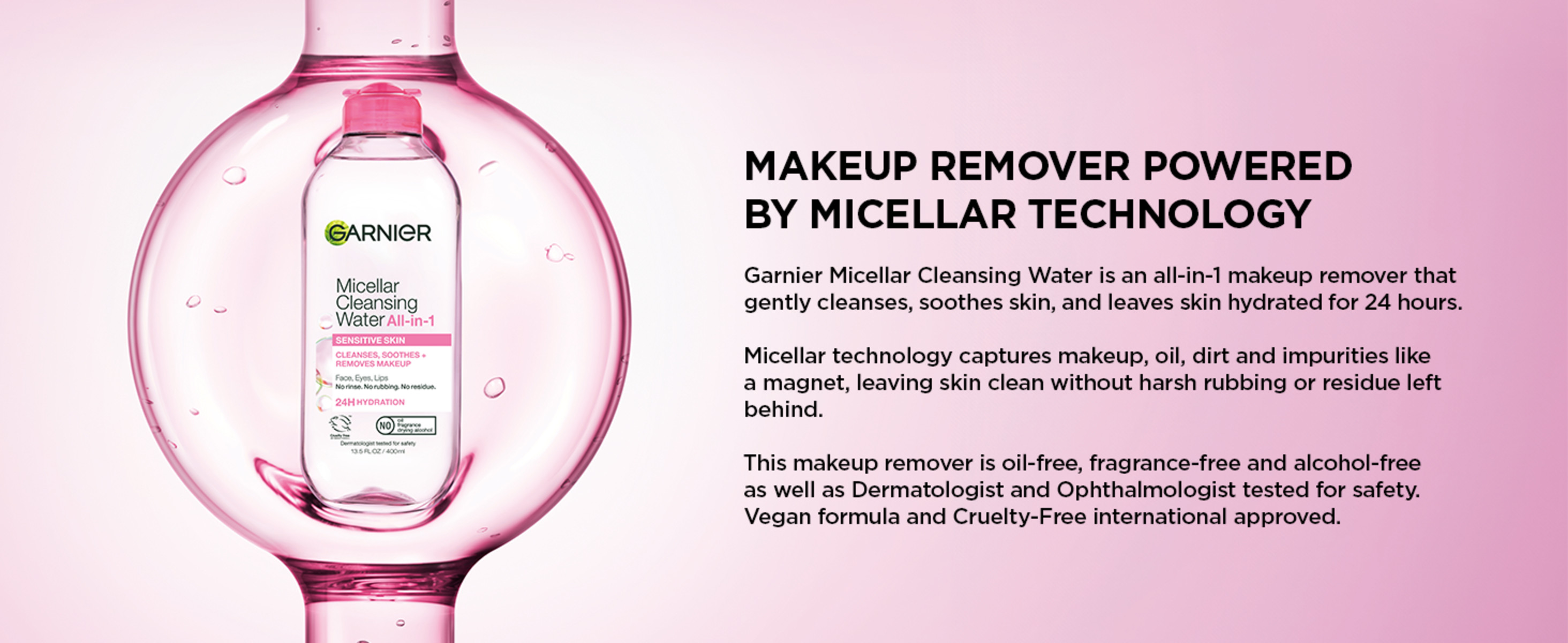 - Garnier Micellar Water cleanses, removes makeup and refreshes skin in just 1 step