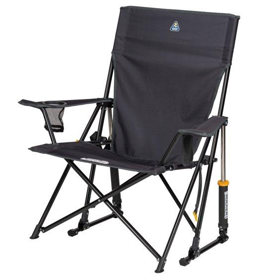 GCI Outdoor Comfort Pro Rocker Foldable Rocking Camp Chair with Solid Backrest, Dark Charcoal