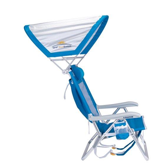 GCI Outdoor SunShade Backpack Beach Chair Reclining Low Profile Seat with Canopy, Saybrook Blue