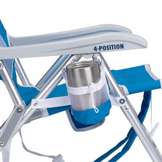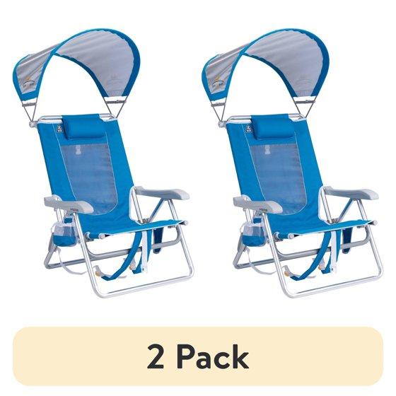 (2 pack) GCI Outdoor SunShade Backpack Beach Chair Reclining Low Profile Seat with Canopy, Saybrook Blue