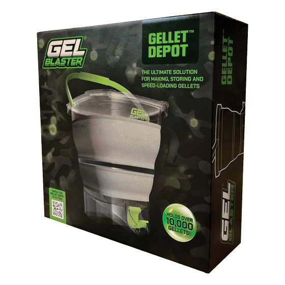 Hydrate, strain, and speed-load your Gellets with the Gel Blaster Gellet Depot! The ultimate solution for making, storing, and speed loading Gellets, Gellet Depot acts as your home base for reloading and jumping back into the battle. This practical and portable tub holds a gallon of water and is collapsible when not in use. Gellet Depot holds more than 10,000 Gellets and features a built-in Water Strainer and a built-in Gellet Speed Loader so you can remove excess water, load your Gel Blaster, and get right back in the action. Just fill Gellet Depot with a gallon of water, add your Gel Blaster Gellets, wait 2 hours for the Gellets to fully hydrate, then get Blasting! Gellets last indefinitely when dehydrated and up to three months when submerged in water. Gellet Depot dimensions when collapsed: 10.5in x 2in. Dimensions when open: 10.5in x 8in. Adrenaline-filled, competitive play doesn’t need to be messy. That’s where Gel Blaster comes in. Our Blasters and Gellets mean you can have epic battles indoors, outdoors, or anywhere else you want with barely any mess or cleanup!