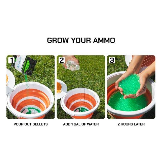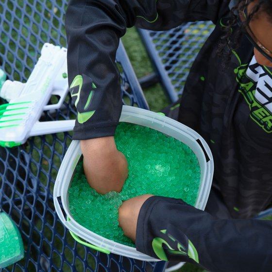 Gel Blaster Gellets™ are small, colorful, water based self absorbing balls consisting of starch and water. They are eco-friendly, non-toxic, and non-irritating so they are safe for everyone! Gel Blaster Gellets™ pop on contact and immediately begin to disintegrate leaving no mess, no cleanup, and no worries! Included is 10,000 7.5mm Electric Green Gellets that can be used in any Gel Bead Blaster using 7.5mm ammo.