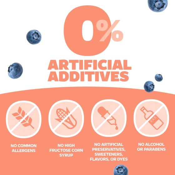 Organic Agave, Organic Natural Flavor, Water, Organic Natural Citrus Extract and Organic Blueberry Flavor