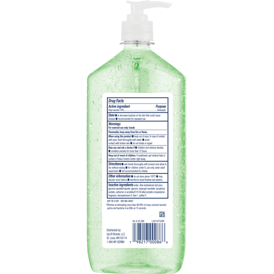 Stay confidently sanitized and refreshed with Germ-X Advanced Hand Sanitizer with Aloe—a moisturizing hand sanitizer designed especially for healthcare workers and busy families alike. Featuring an advanced antibacterial gel formula with 70% alcohol, this sanitizer is effective at killing more than 99.99% of many common harmful germs and bacteria in as little as 15 seconds.