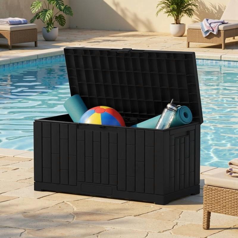 - Portable Handled Bin for Multi-Scene Use: Featuring practical handles on both sides, this easy-carry storage box moves effortlessly between locations. Use it in the garden, on the deck, by the pool, or in the garage—wherever extra storage or seating is needed with this versatile deck box with lid and durable water proof deck bin.
