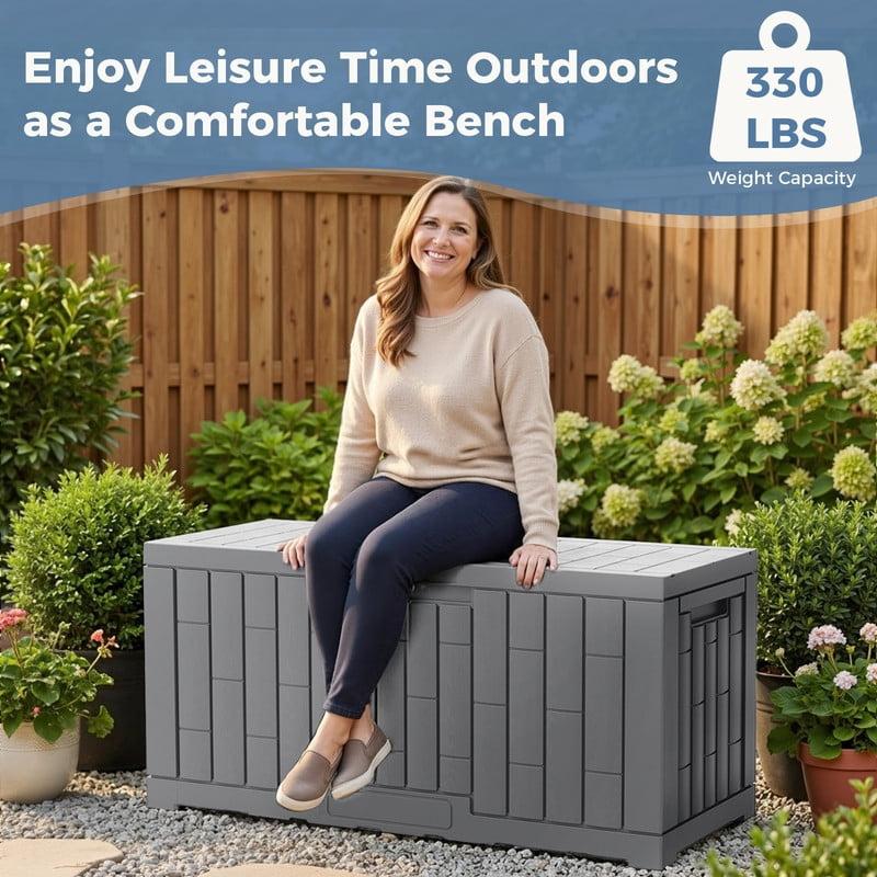 - Quick Assembly & Strong Bench-Style Design: Set up this durable storage container in just 10 minutes—no tools needed. With a 330-lb weight capacity, the deck boxes outdoor waterproof also serves as a comfortable, reliable bench. Its large, sturdy construction is perfect for patios, gardens, yards, and porches as a versatile outdoor storage box.