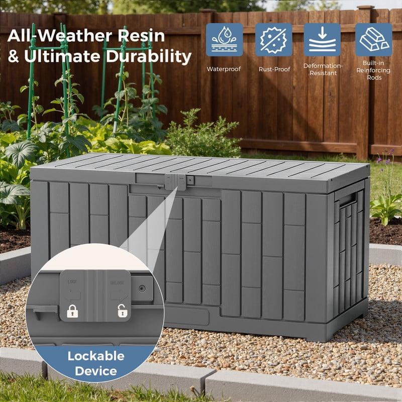 - All-Weather Durable & Waterproof Storage Container: Built to endure harsh conditions, the Dumos waterproof deck box is made from UV-resistant resin that prevents rust, peeling, and dents. Reinforced internal bars ensure this storage box won’t warp or deform under sunlight, making it a truly weatherproof outdoor storage container.