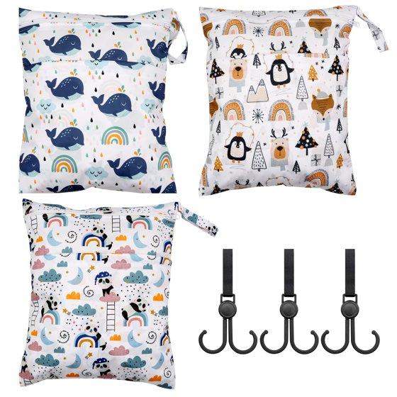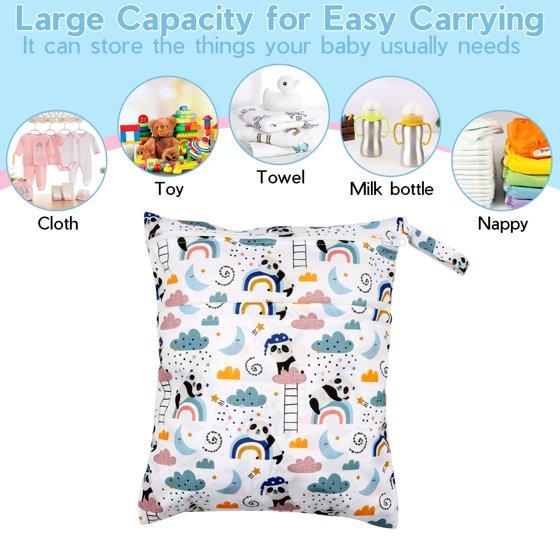 - 【High Quality Material】 Wet bags are made of breathable polyester and waterproof Polyethylene material, good waterproof effect. They are safe to preserve baby products, diapers, wet or dry clothes, towels, swimsuits etc.