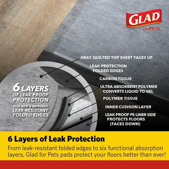 - ABSORBS PET URINE AND ODOR - Glad Pets carbon-activated puppy pads absorb odor and pet urine