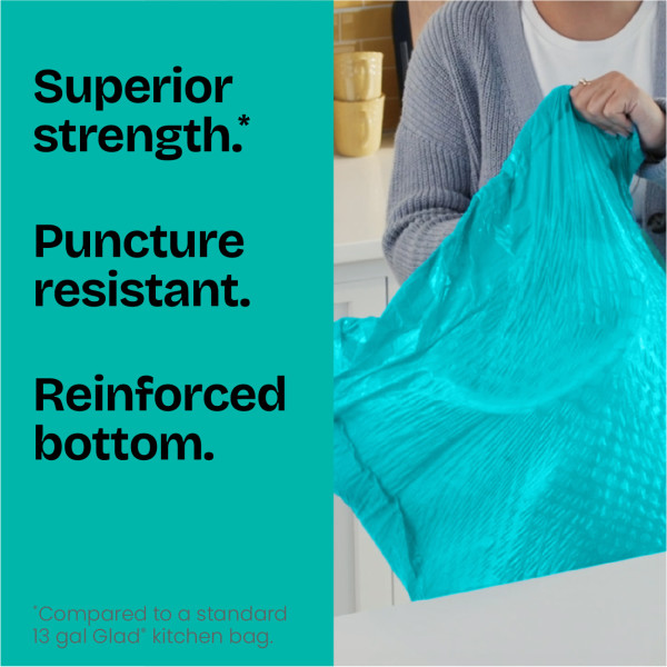 - LEAK PROTECTION: Glad kitchen trash bags designed with double side seals and a reinforced bottom to uniquely trap liquids and prevent leaks