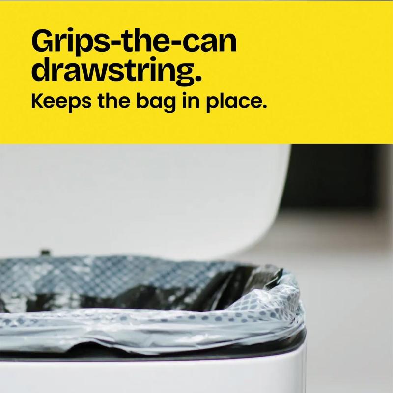The Grips-The-Can 3-ply drawstring keeps the bag securely in place until you're ready to remove it. Designed to fit containers up to 2 feet and tall kitchen trash cans that hold up to 13 gallons, these bags are compatible with simple human H, Q, K, M, N, J liners and similar trash cans. Closing and carrying the trash has never been easier.