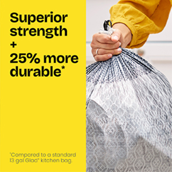 - DRAWSTRING TRASH BAGS: Twenty (20) 13-gallon Glad ForceFlex MaxStrength With Clorox Drawstring Tall Kitchen Trash Bags in Lemon Fresh Bleach scent
