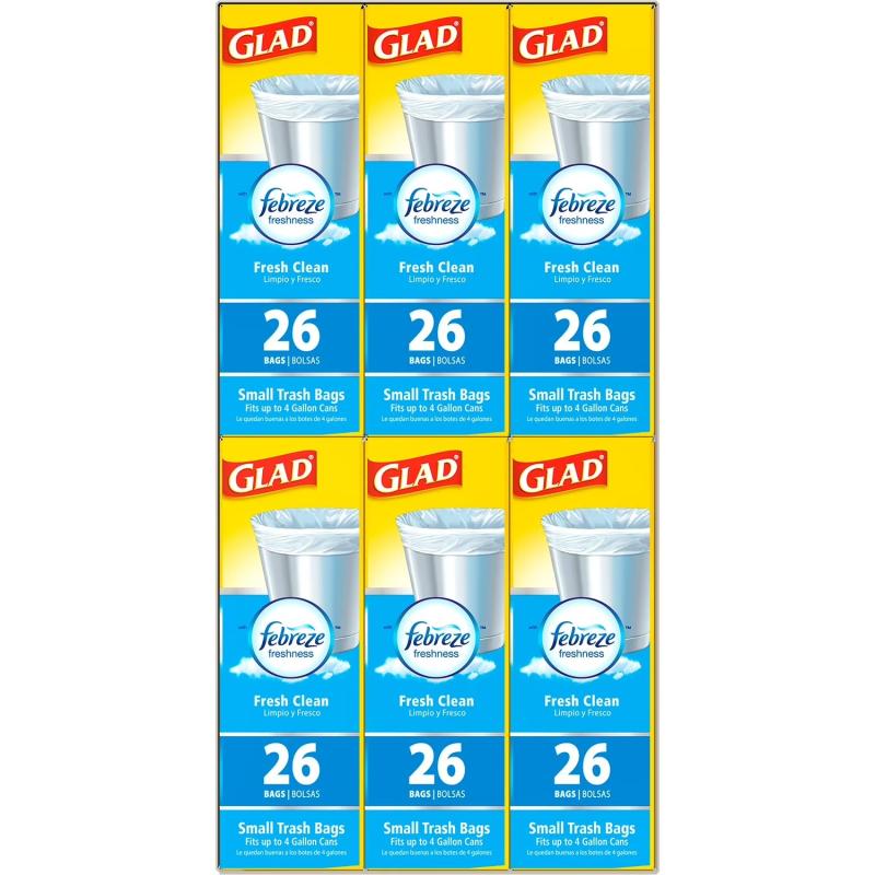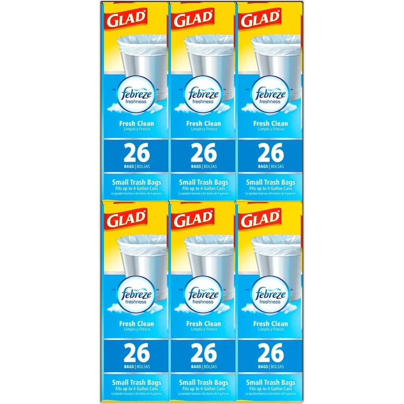 Glad Small Twist-Tie White Trash Bags, Fresh Clean Scent with Febreze Freshness, 4 gal., 156 ct.