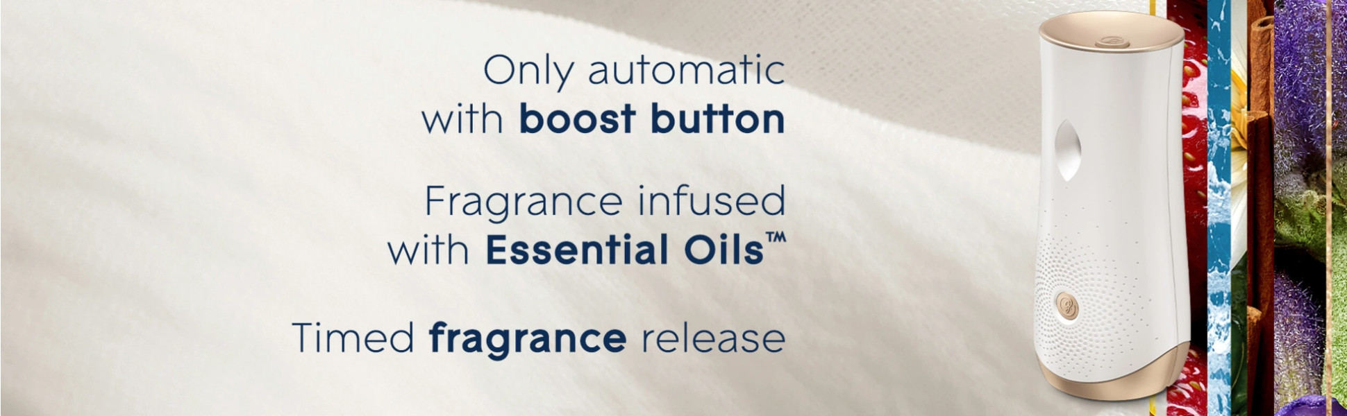 - Enjoy a fresh burst every 9, 18 or 36 min for a timed fragrance release