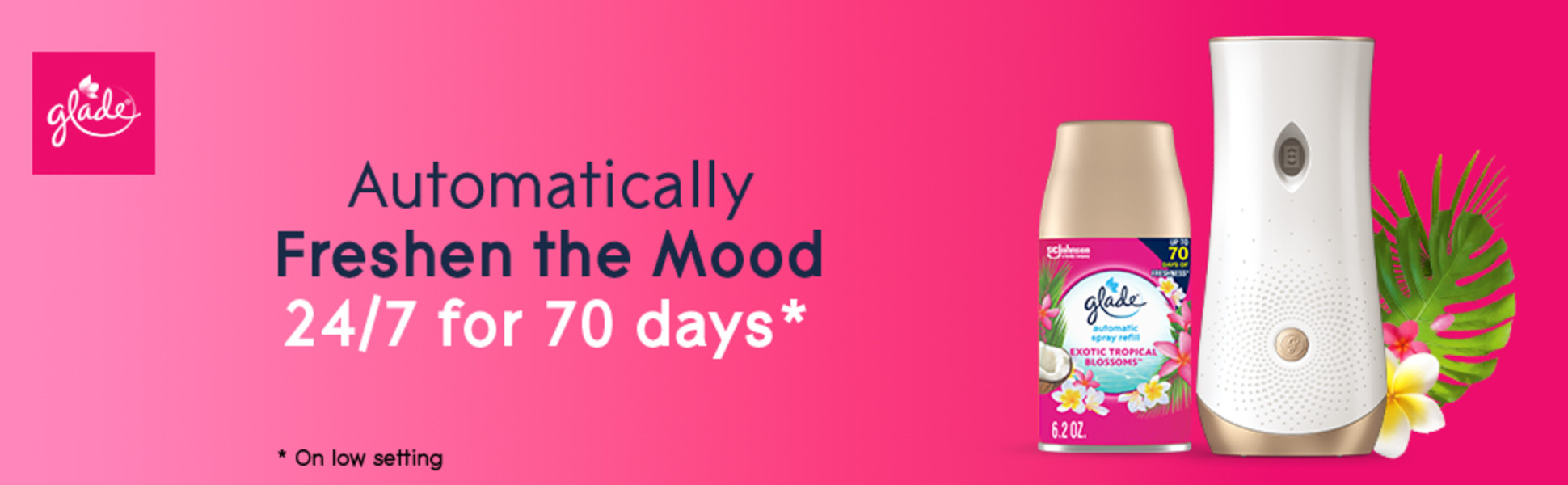 Glade Automatic Spray Refills, Air Freshener, Infused with Essential Oils, Exotic Tropical Blossoms, 6.2 oz, 2 Count