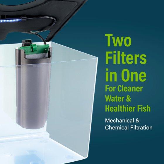 - INTERNAL FILTRATION: The filter pulls water from the aquarium and pushes it through the filter cartridge, where the dense, dual-sided mesh catches debris and waste.