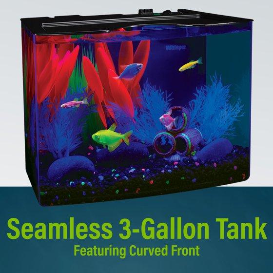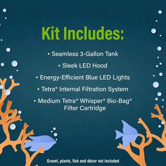 - INCLUDES ALL THE ESSENTIALS: This 3-gallon kit includes a seamless, crescent-shaped tank and energy-efficient blue LED lighting.
