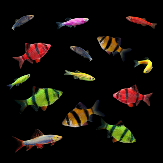 Want an easy way to set up your new aquarium? This assortment of GloFish danios, Tiger Barbs, and a shark get along great and will give you a lively exciting viewing experience. These fish are active swimmers and will give your aquarium a sense of constant motion. Due to the high activity rate, we recommend you feed GloFish Flakes to the GloFish Danios and Tiger Barbs ever day. The GloFish shark needs the additional nutrition provided by GloFish sinking wafers.
