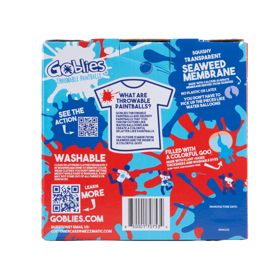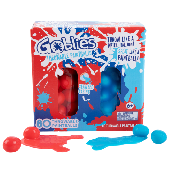 - Get ready for a day of unforgettable fun! Goblies Throwable Paintballs are paintballs that you throw like water balloons that create a colorful splatter like a paintball. The outside membrane is made of seaweed so there is no need to pick up the pieces after play time.