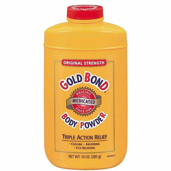 - Triple Action Relief, Cooling, Absorbing, Itch Relieving, Original Strength Gold Bond Body Powder, Gold Bond Body Powder's triple action formula is a blend of two medically proven ingredients combined with the finest powder and essential oils to cool and soothe skin, absorb excess moisture and stop the itch.