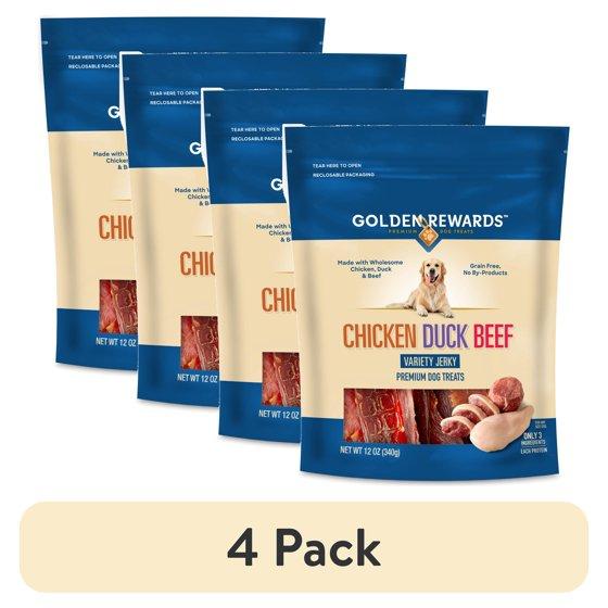 - Golden Rewards Chicken, Duck and Beef Premium Variety Jerky Treats for Dogs, 12 oz Bag