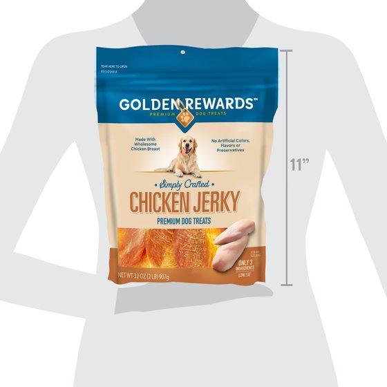 - Golden Rewards Chicken Flavor Premium Dry Jerky Treats for All Dogs, 32 oz