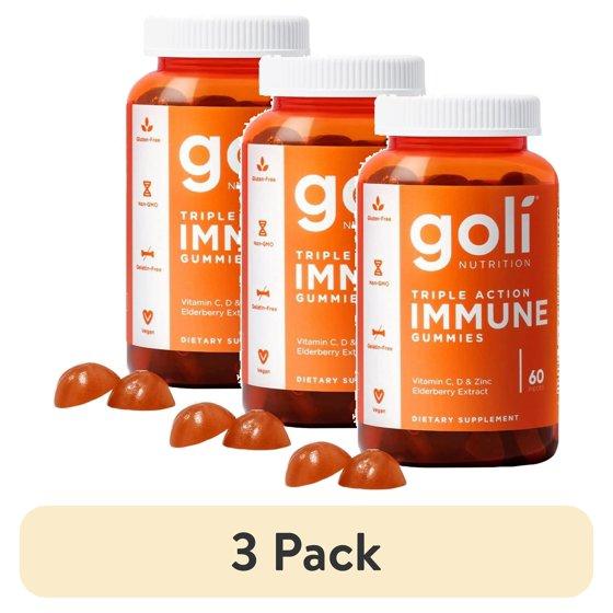 (3 pack) Goli Nutrition Triple Action Immune Gummies, Energy and Immune Support, 60 Count