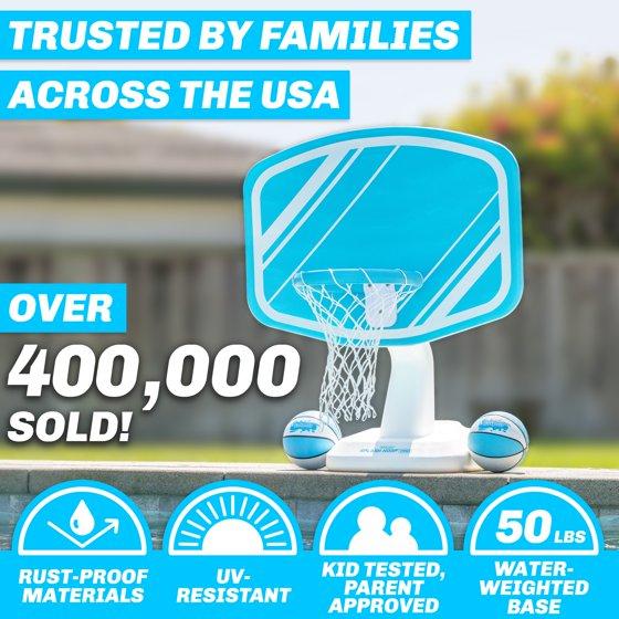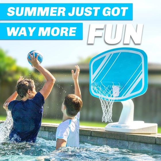GoSports Splash Hoop PRO Swimming Pool Basketball Game - Includes Poolside Water Basketball Hoop, 2 Balls and Pump – Aqua