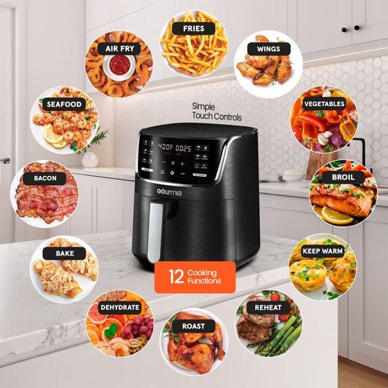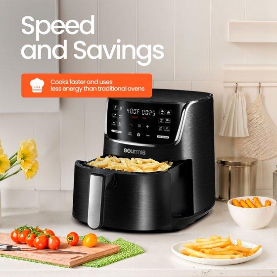 - Gourmia's FryForce 360 Technology fries with air for up to 80% less fat