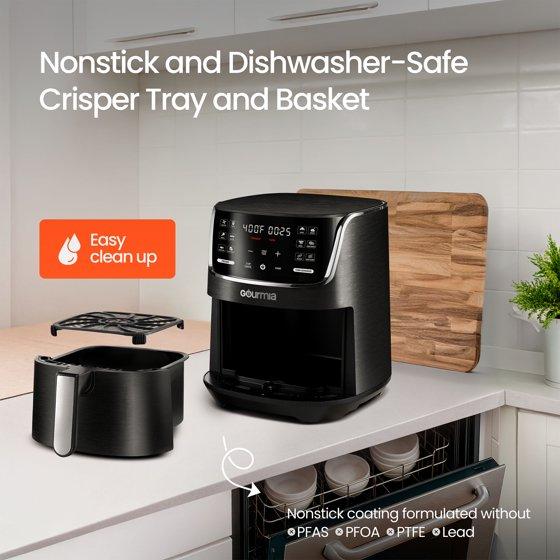 - Quick cleanup with a dishwasher-safe nonstick basket and crisper tray