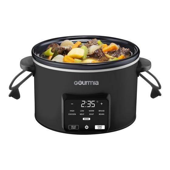 Gourmia Programmable Slow Cooker 4.5 Qt with Digital Controls and Auto Keep Warm, Black