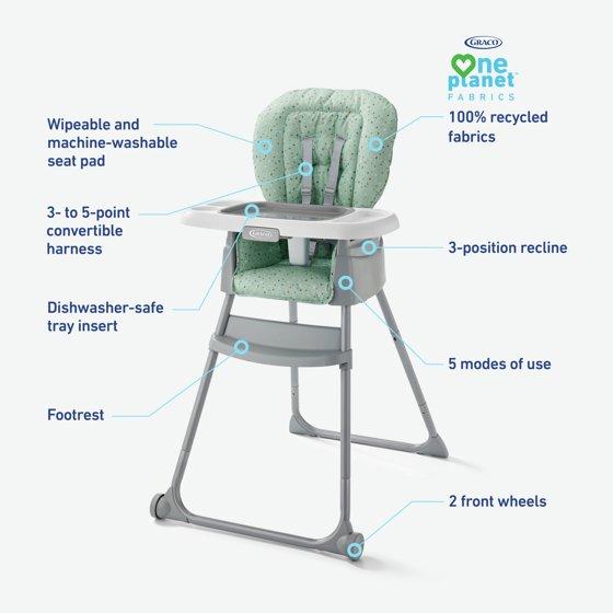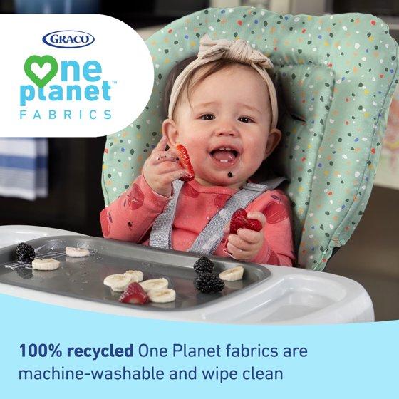 - Graco OnePlanet highchair fabrics made from 100% recycled materials