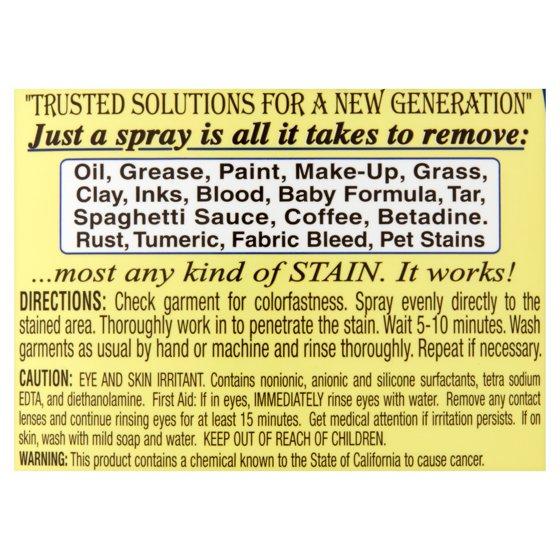 Get rid of unwanted stains from almost any type of fabric with Grandma's Secret Spot Remover Laundry Spray. The powerful yet eco-friendly formula is non-toxic and biodegradable. The fabric stain remover spray helps to remove almost any kind of stain you can drudge up. This Spot Remover contains an easy trigger spray top to help accurately pinpoint the stains normal washing machines have trouble cleaning. The formula has no bleach, chlorine or phosphates added and it leaves behind a pleasant citrus fragrance.