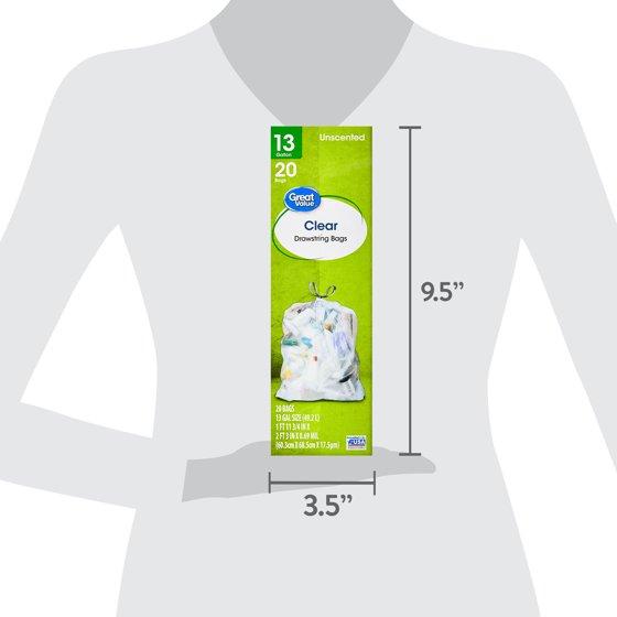 - Great Value 13-Gallon Clear Drawstring Tall Kitchen Bags, Unscented, 20 Bags