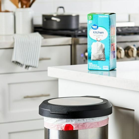 - Great Value 13-Gallon Drawstring Tall Kitchen Trash Bags, Unscented, 40 Bags