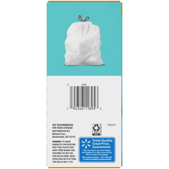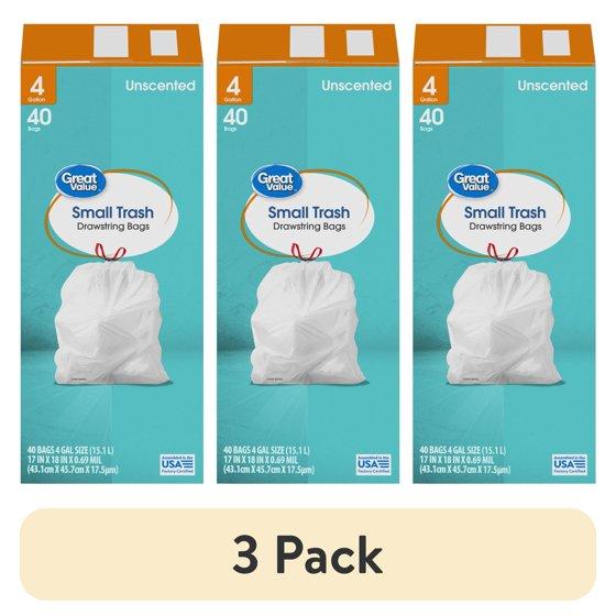 - Great Value 4-Gallon Small Drawstring Trash Bags, 40 Bags