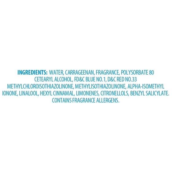 WATER CARRAGEENAN FRAGRANCE POLYSORBATE 80 CETEARYL ALCOHOL BLUE 1 METHYLCHLOROISOTHIAZOLINONE RED 33 METHYLISOTHIAZOLINONE CONTAINS FRAGRANCE ALLERGEN: ALPHA-ISOMETHYL IONONE LINALOOL HEXYL CINNAMAL LIMONENES CITRONELLOLS BENZYL SALICYLATE