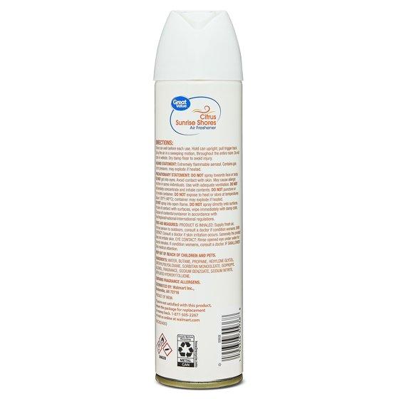 - Great Value Aerosol Air Freshener, Citrus Sunrise Shores, 8 oz