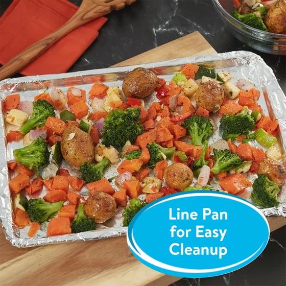 Streamline your cooking, grilling, and baking with our Great Value Aluminum Foil. Tough enough to withstand the heat of your grill or oven, you can use this foil as an insulator to keep prepared food toasty or use it as a pan liner to make after-dinner clean-up a breeze. If you're looking for an alternate way to safely store your leftovers, just wrap them up in our aluminum foil prior to freezing or refrigeration for a quick and convenient storage solution. Each box includes locking ends and a sharp cutting edge that makes it super simple to grab the right amount of foil for the project at hand. Plus, the stay-closed tab keeps your foil box closed while not in use. Discover all your new cooking, grilling, and baking possibilities with our Great Value Aluminum Foil. Great Value products provide families with affordable, high-quality grocery and household consumable options.