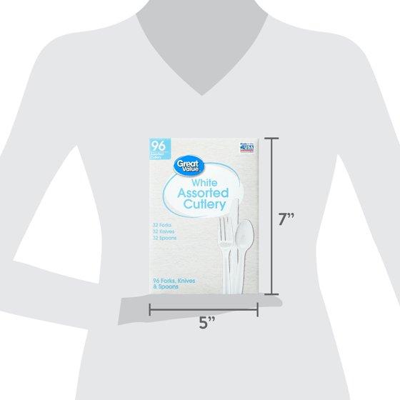 • Great Value Assorted Plastic Disposable Cutlery Set, White, 96 Count