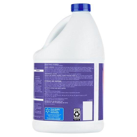 Great Value Bleach is your next move towards a cleaner, fresher household. Our bleach is designed to work with most standard HE washers and will keep your whites brighter longer as it fights tough to remove stains. It's also effective for cleaning and sanitizing common household surfaces. Bathrooms, kitchen surfaces, dishes, and sinks alike will all benefit from our bleach's powerful, more concentrated formula. Leave your home looking clean and feeling fresh with our Great Value Bleach. Great Value products provide families with affordable, high-quality grocery and household consumable options. With our wide range of product categories spanning grocery and household consumables, we offer you a variety of products for your family's needs.