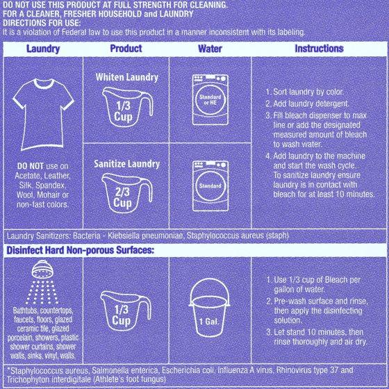 Great Value Bleach is your next move towards a cleaner, fresher household. Our bleach is designed to work with most standard HE washers and will keep your whites brighter longer as it fights tough to remove stains. It's also effective for cleaning and sanitizing common household surfaces. Bathrooms, kitchen surfaces, dishes, and sinks alike will all benefit from our bleach's powerful, more concentrated formula. Leave your home looking clean and feeling fresh with our Great Value Bleach. Great Value products provide families with affordable, high-quality grocery and household consumable options. With our wide range of product categories spanning grocery and household consumables, we offer you a variety of products for your family's needs.