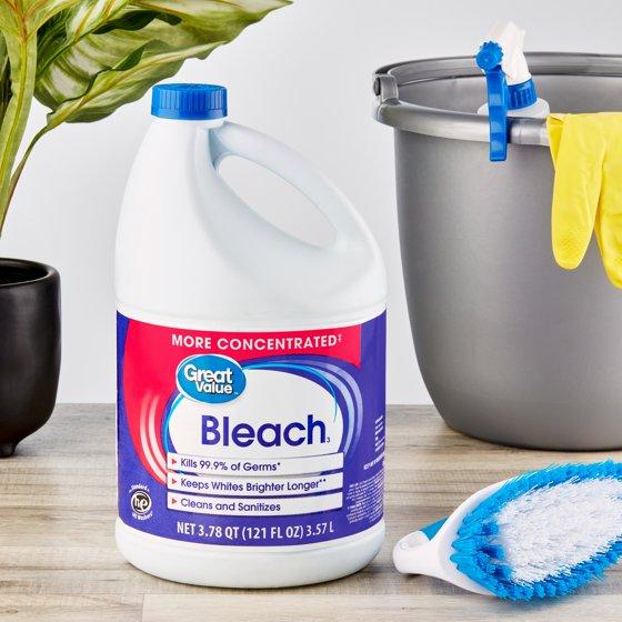 Great Value Bleach is your next move towards a cleaner, fresher household. Our bleach is designed to work with most standard HE washers and will keep your whites brighter longer as it fights tough to remove stains. It's also effective for cleaning and sanitizing common household surfaces. Bathrooms, kitchen surfaces, dishes, and sinks alike will all benefit from our bleach's powerful, more concentrated formula. Leave your home looking clean and feeling fresh with our Great Value Bleach. Great Value products provide families with affordable, high-quality grocery and household consumable options. With our wide range of product categories spanning grocery and household consumables, we offer you a variety of products for your family's needs.