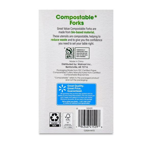 Great Value Disposable Compostable Forks, 48 Count