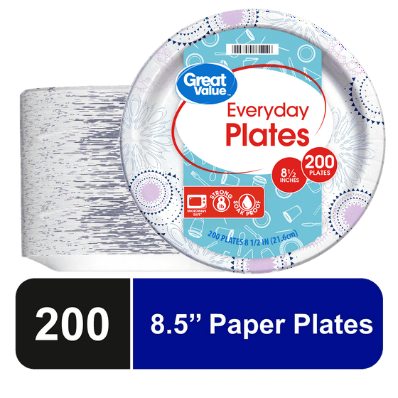 - Great Value Everyday Disposable Paper Plates, 8.5", 200 Count