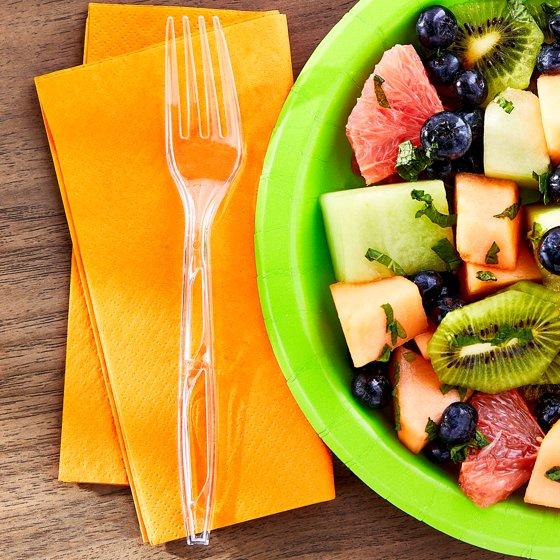 Entertaining is a breeze with Great Value Everyday Clear Forks. Keep these forks on hand for barbecues, picnics, tailgates, and home entertaining all year round. Reliably strong and sturdy enough to tackle even the toughest picnic challenges, each package contains 100 forks to meet your entertaining needs, no matter the size of the crowd. Use these disposable forks at your next get together to make clean up a cinch! The clear cutlery has a sleek look and finish, allowing your food to take center stage. Great Value makes it easy to stock up on assorted cutlery, so you're always prepared to host. Great Value Everyday Clear Forks are convenient and disposable, making school lunches, family brunches, weeknight dinners, and holidays more manageable.